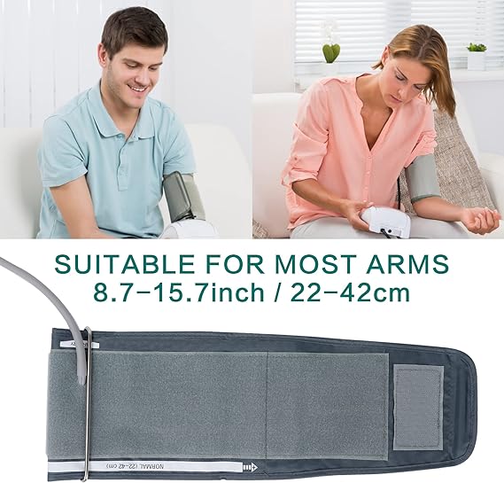 - Cómodo puño BP: Puño de presión arterial de amplio rango de nailon Solft para una experiencia de prueba más cómoda. El puño bp se adapta a la parte superior de los brazos de los adultos de 8.7 a 16.5 pulgadas de circunferencia. Diseño de puño ajustable para minimizar la tensión al medir la presión arterial.