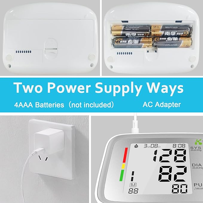 [Fuente de alimentación doble y función de memoria]: este monitor de presión arterial en la parte superior del brazo se puede usar conectado a USB o con baterías instaladas. Además, está equipado con un botón de memoria, que admite 2 usuarios y 90 conjuntos de datos de memoria, presta atención a cada cambio.