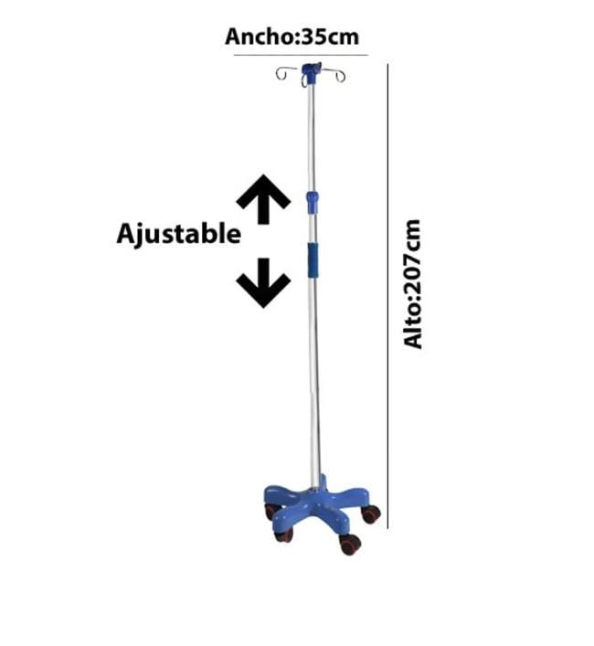 Porta sueros de 4 servicios con base plastica en ABS grado medico. con ruedas.